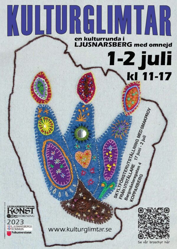 Affischen för Kulturglimtar 2023. Broderi av Karin Alstermark.